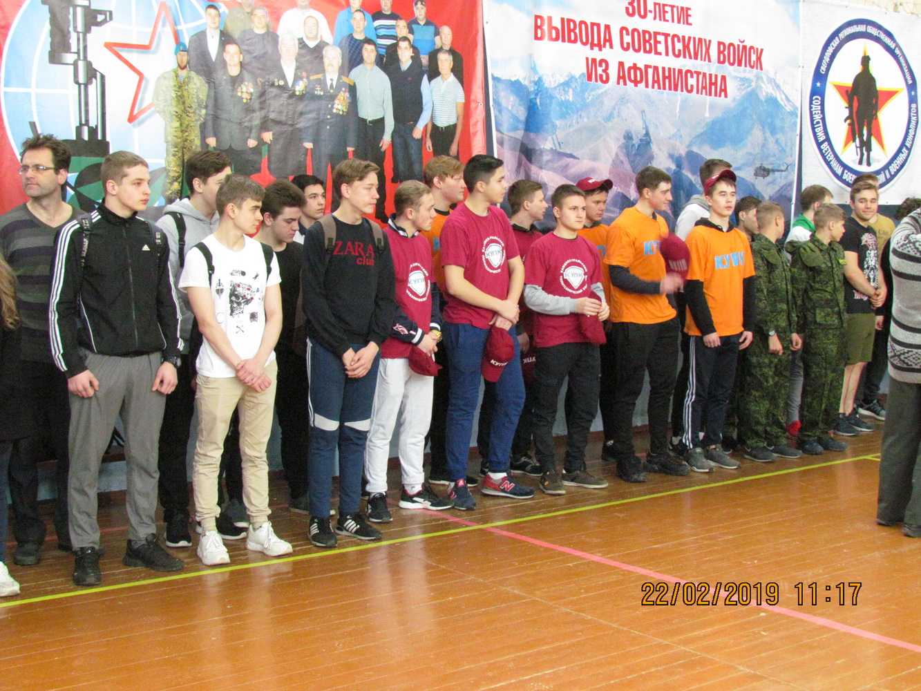 Второй военно-спортивный турнир состоялся в Агропромышленном техникуме 22.02.2019 года. Участвовало 14 команд военно-патриотических клубов города и Каменского района. Тематика Торжественной части – «30 лет вывода Советских войск из Афганистана».